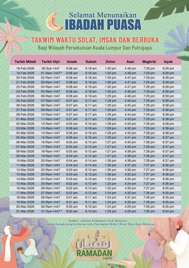 Takwim Waktu Solat, Imsak & Berbuka | Ramadan 2026