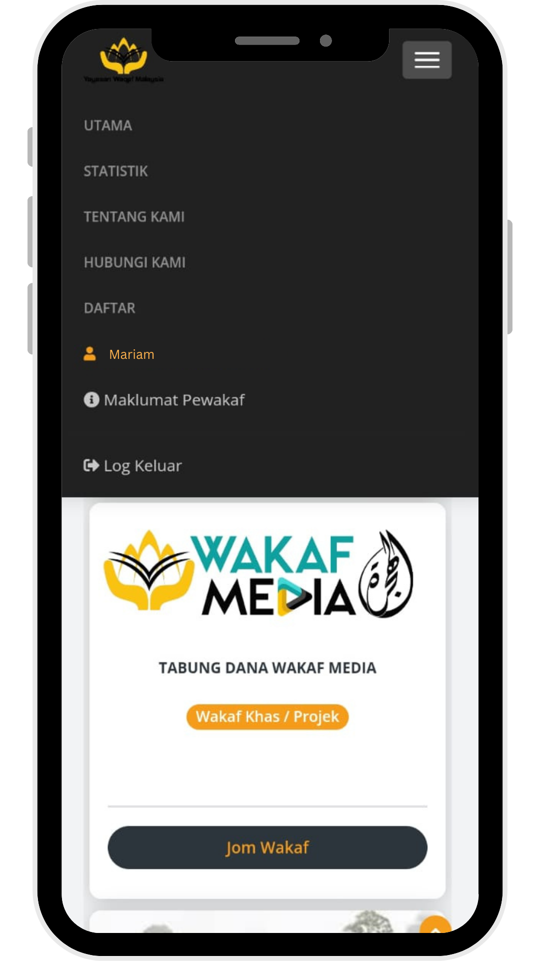 Klik Profil (Nama Penuh Pendaftar) dan Pilih Maklumat Pewakaf